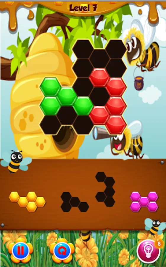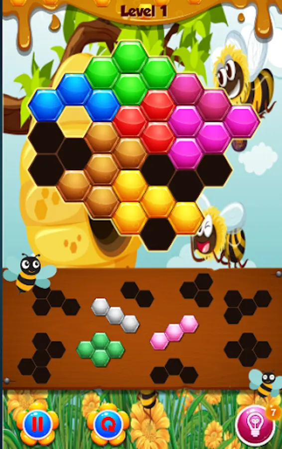 The bee need your help, they have gathered a lot of honeycombs and now they need to fill the beehive completing different forms of hexa puzzle.