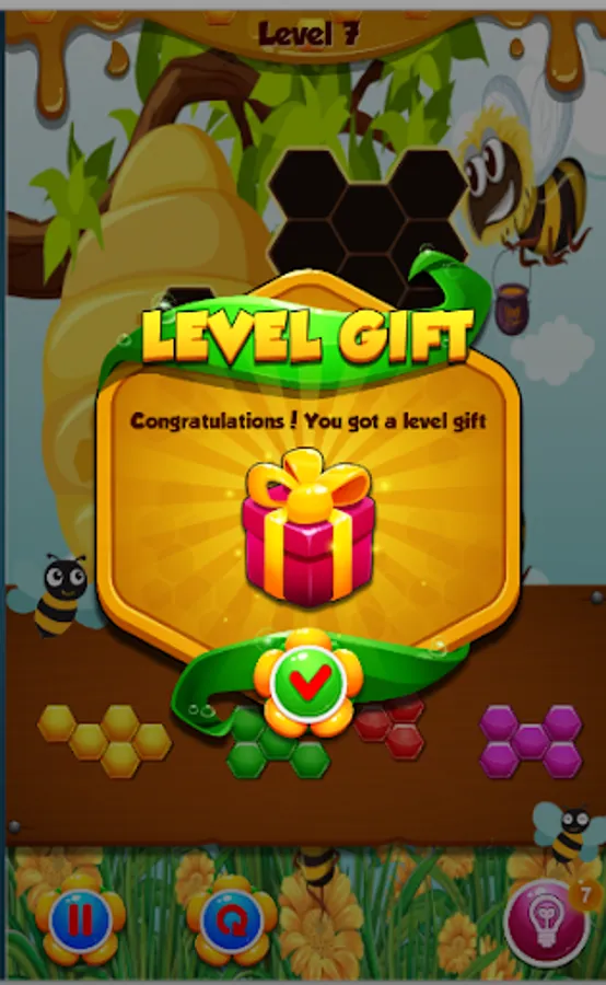 Move the honeycomb with your finger and try to complete the beehive form. Use the hint if your stuck, the advice is to use it only if needed.