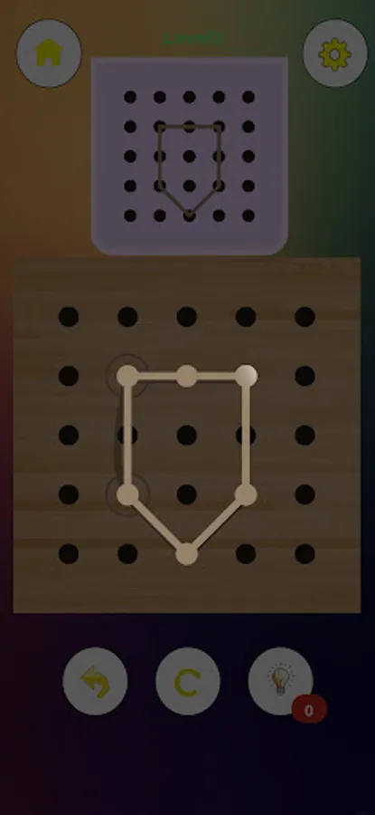 After connecting dots, you will have wonderful shapes and patterns, but to do that and make the exact shape, you must divide the line of string into two line then create connecting points between those two lines, you don’t pass level until you link two dots and cover the entire board with a beautiful shape.