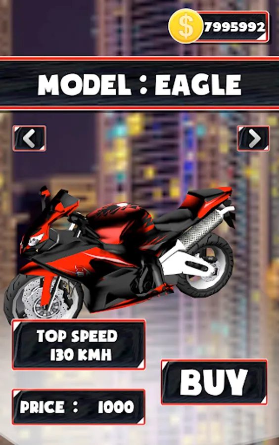Increase your speed as much as you can to earn extra points.This game gives you a chance to do something that can not be done in real life traffic.Choose your favorite sports bike and get ready for unlimited fun on the road. This time there is no traffic rule to following.Ride your bike like a free bird and fly on road like a jet plane. Collect as many coins as you can to upgrade your bikes and buy amazing upgrades.