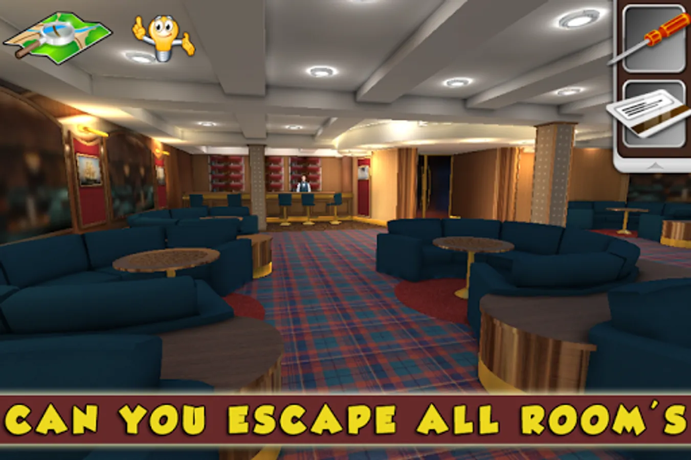 Can you escape 3D: Cruise Ship is a game where you explore many different rooms and locations on a cruise ship. Easy controls are implemented to make it easy to navigate through the cruise ship. The game will auto save every step you make, so you do not need to redo anything.
