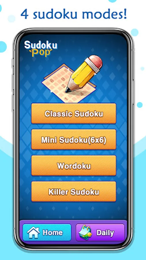 - 4 types of Sudoku mode: 9x9 Classic Sudoku, 6x6 Mini Sudoku, Wordoku and Killer Sudoku