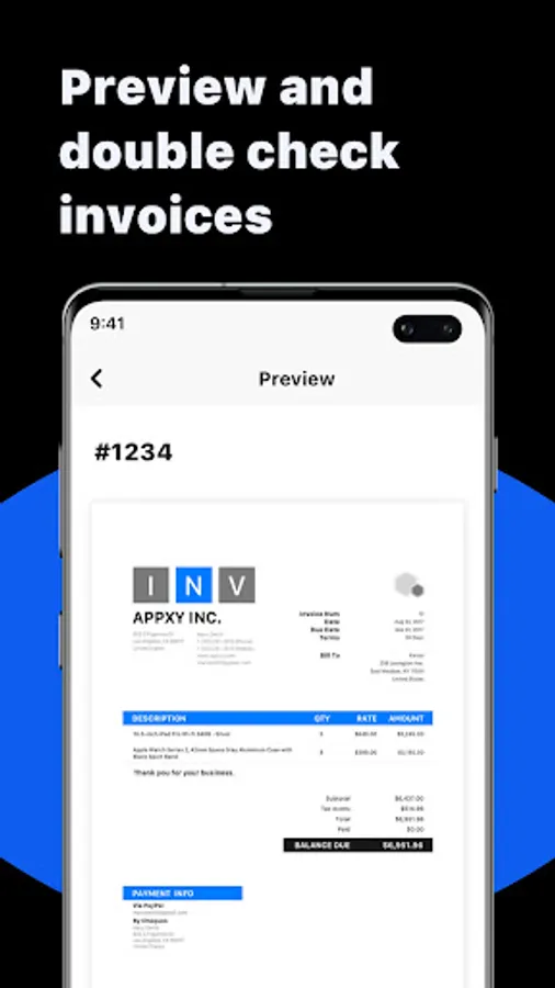 Finally, preview and review the final invoice, and share them by email, fax, or more options from the iOS system.