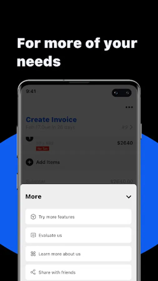 Invoice Clip is designed for the self-employed or contractors to generate and share invoices instantly in scenarios such as face-to-face with customers.