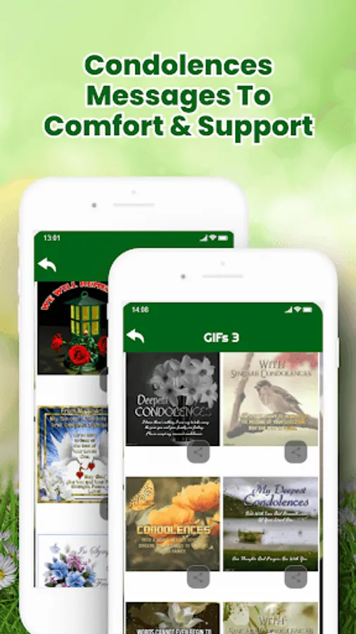 Highlights of this Condolences Sympathy Messages Greeting Cards Wishes GIFs App: