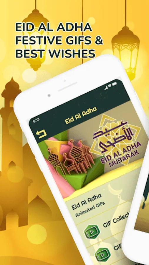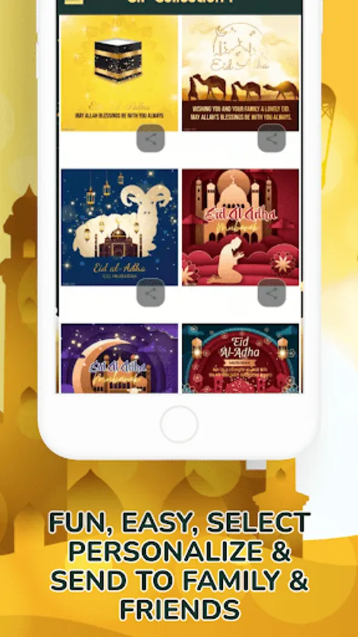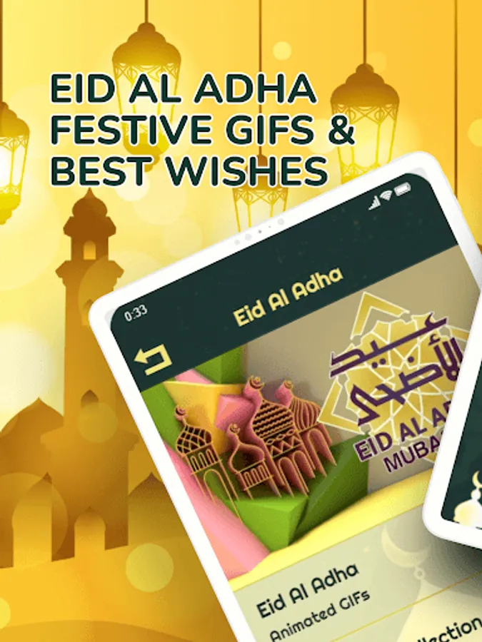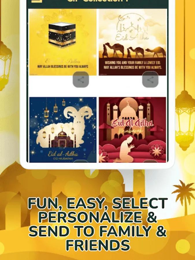 Eid Al Adha Eid Mubarak Wishes GIFs App provides you with warm greetings and wishes in the form of animated GIF and wishes carefully selected for your family and muslim friends celebrating this religious festival.