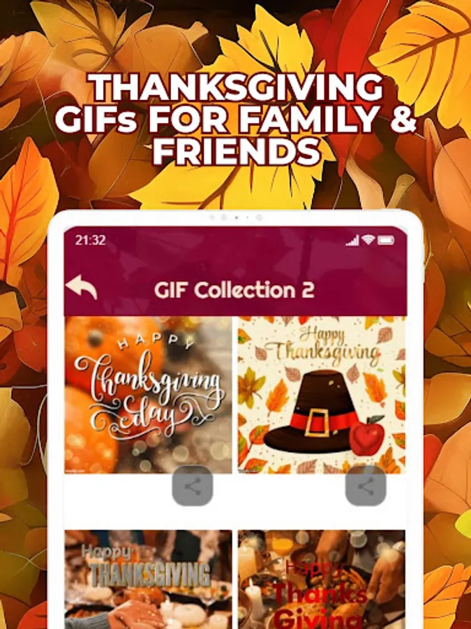 Thanksgiving Day Wishes GIF Images App is 100% free. This application is available for any Android users. Sharing free greeting cards & wishes is very easy with this app. Browse through our heartwarming collection of exclusively edited Thanksgiving Day Wishes GIF Images and choose your favourite greeting cards all occasions and share! It is that simple! There's no limit to the number of Thanksgiving Day Wishes GIF Images and wishes you can send.