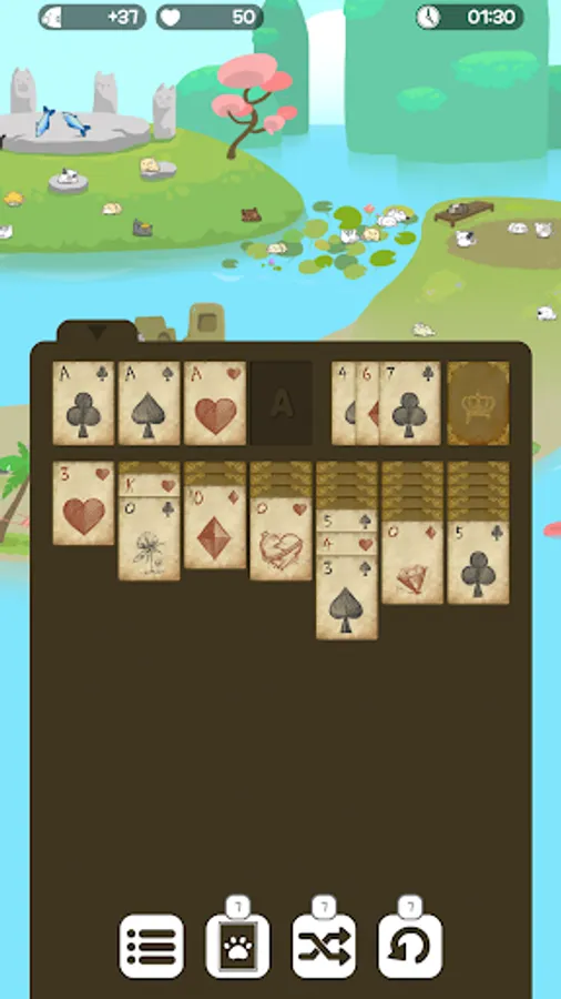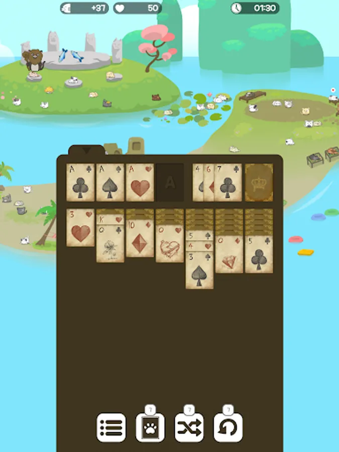 The more you play Solitaire, the better the world above the sea will grow. And the number of cats following you will increase.
