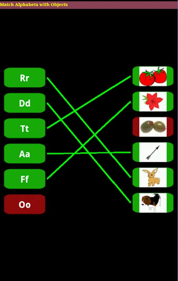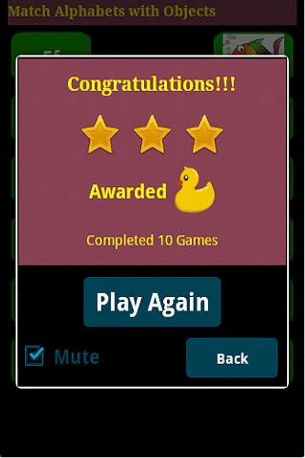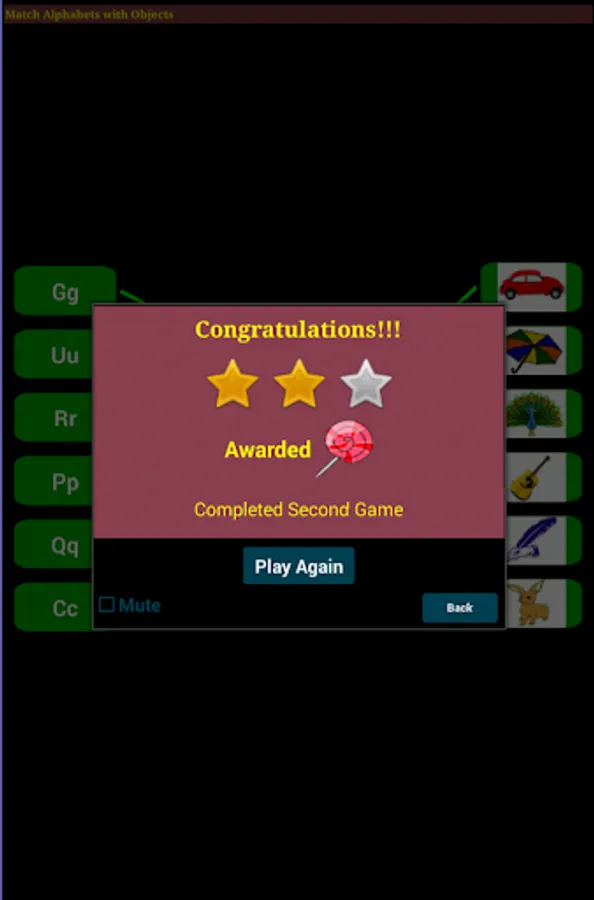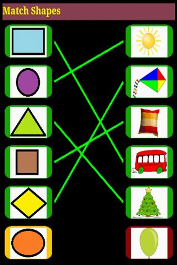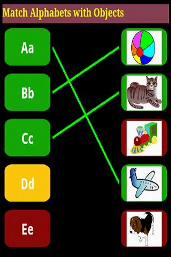 This matching game provides a fun and easy way to learn alphabets, numbers, colors and shapes and also associate objects with them. Be it matching 'A' with an 'Apple' or 'Green' with 'Leaf' or even 'Triangle' with a 'pizza slice' ... its all there and its fun to do with beautiful images. After completing all the matches, the child receives star ratings, applause and awards for certain achievements. It serves to boost the child's memory and understanding.