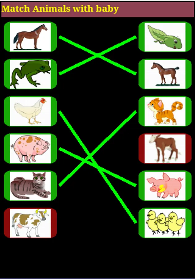 The app now gives an option to includes the new Matching Animal Game where, the child can match Animals with their respective homes, products or babies.