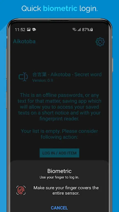 Offline password manager with encrypted SQLLite database. Biometric log in, privacy screen implementation which blurs out the passwords after some period of time so that they could not be seen over your shoulder. Simple UI with one-hand operations to see the password you want. Backup and restore possibilities for holders of the master password.