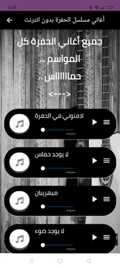 All songs of the hole for all seasons first, second, third and fourth, you will find them in this application