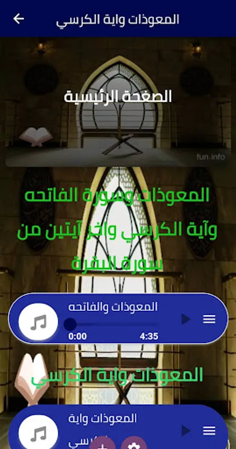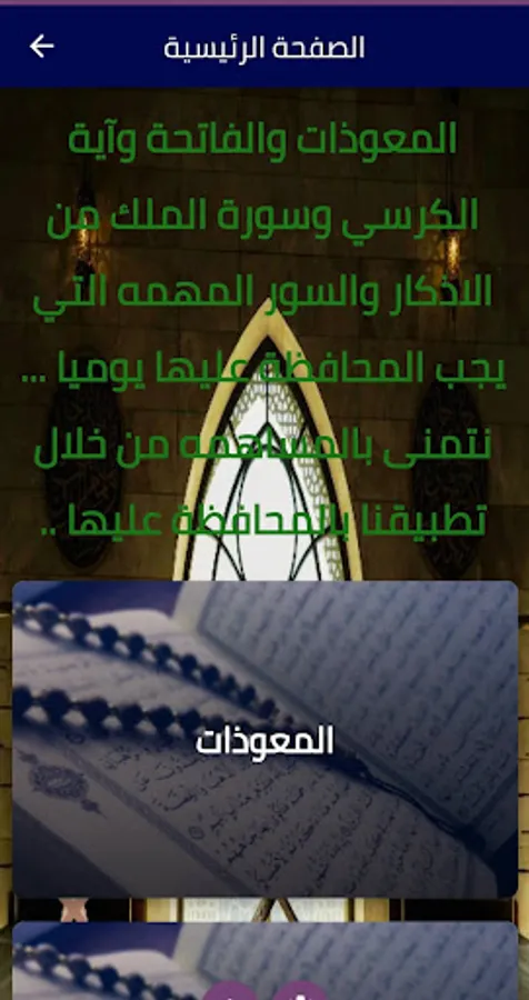 Al-Mu'awwadhaat, the king's hair, Surat Al-Fatihah and the last two verses of Surat Al-Baqarah in one application to read it every day because of its importance and its beautiful impact in our lives...
