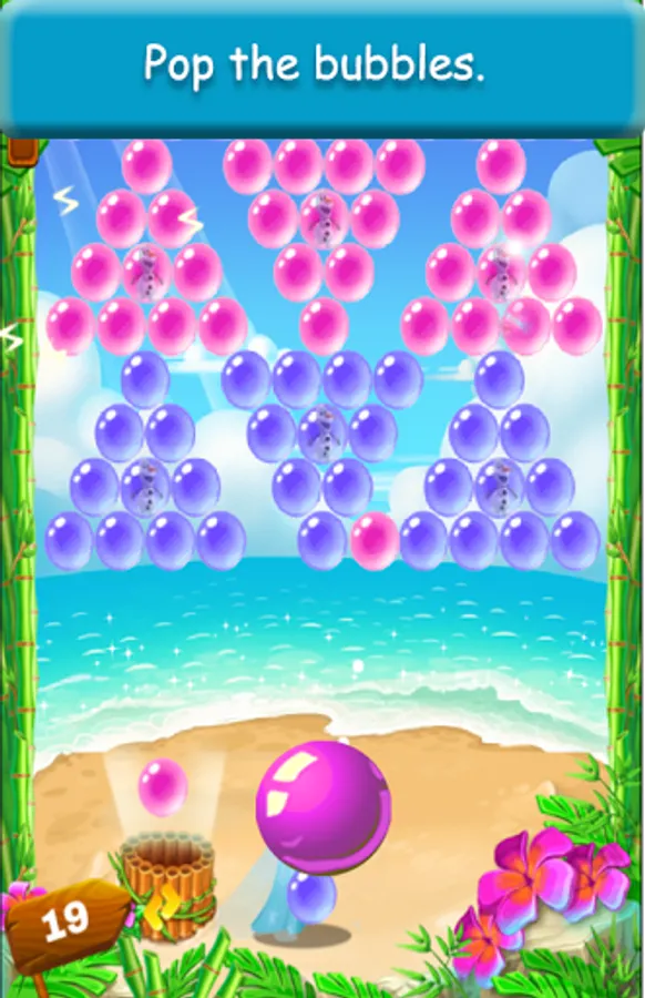 Cute snowman needs help! let ice queen pop bubbles to rescue him.