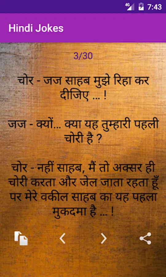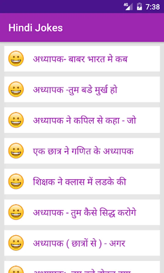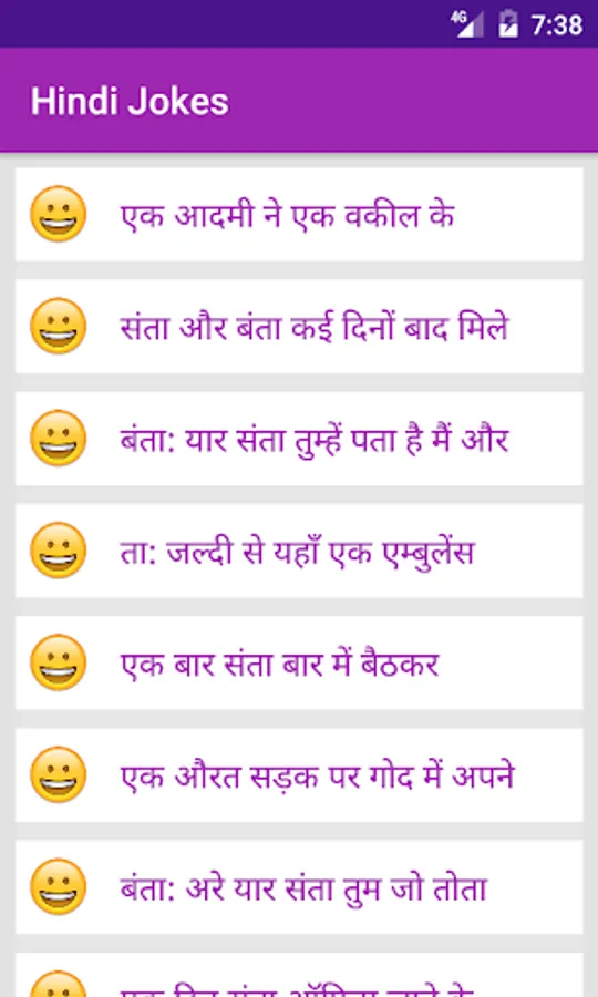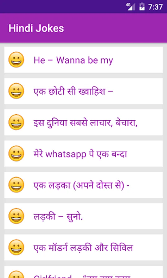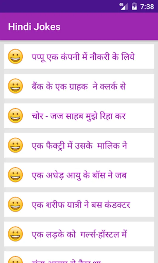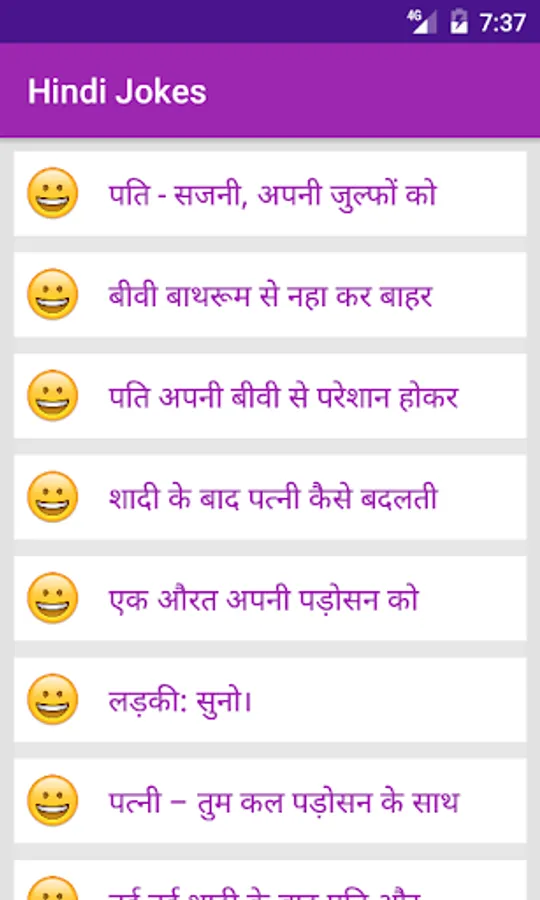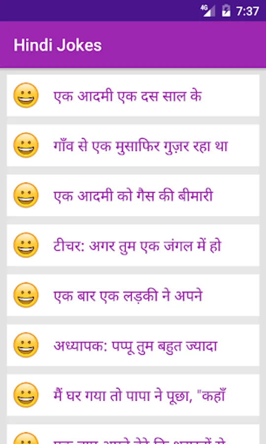 Find out the latest collection of hindi jokes .Jokes is one of the best text for make us laugh and happy .This app contains amazing and too much laughing jokes which will make you happy .
