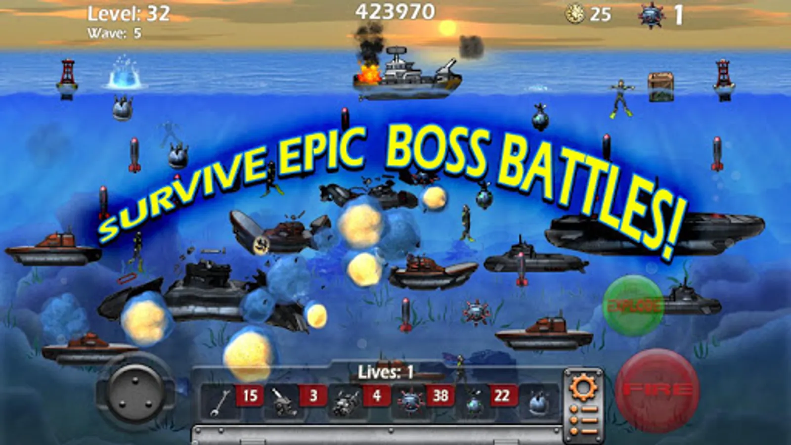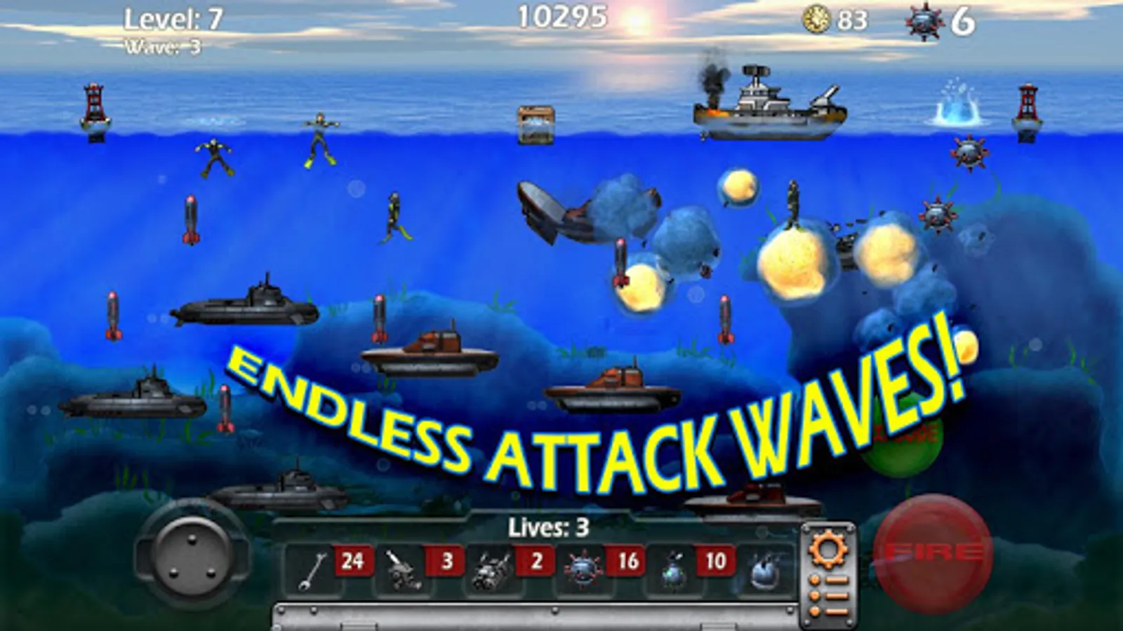 You pilot and control a Battle Sea Craft with the most advanced weapons and weaponry ever created to defend against such ruthlessness under the still ocean water. Command this Sea Craft loaded with Anti Sub Mines and Bombs to reclaim the waters. At your disposal is the best supply of Bombs to destroy the enemy Sub Pirate invasion, you are in a Race for survival. Free the world of under sea terror, Rescue your Scuba Divers, Earn rewards, Keep your engine Running and choose the best Mine supply for your style of play. Game-play is endless, frantic and intense. You're in a race to reduce the terror that dominates the Seven Seas.