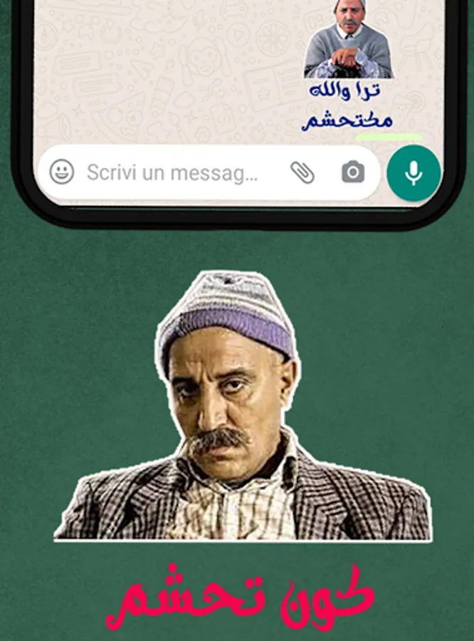 Kebour stickers are ready-made WhatsApp stickers that you can add to the phone and use them in text conversations, and the app has a set of funny stickers for Kabour and Chaibi, funny Moroccan humor.