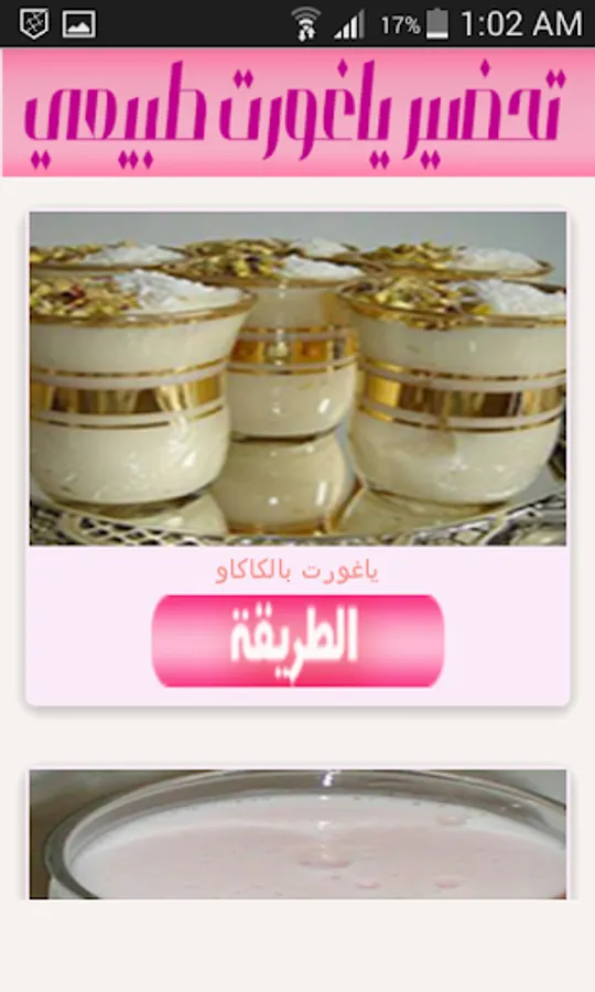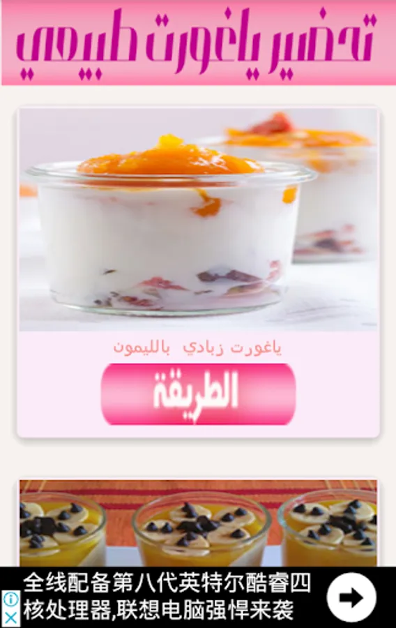 You find in the application: (How to make yogurt with strawberries and berries, how to make vanilla yogurt, method for preparing caramel rib, some easy recipes for Danette Yogurt and making basbousa).