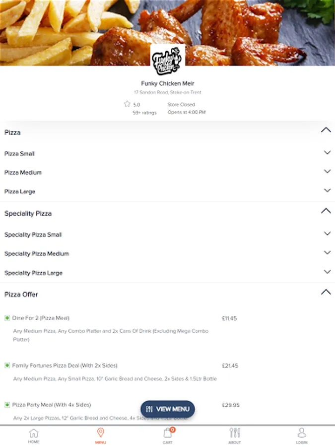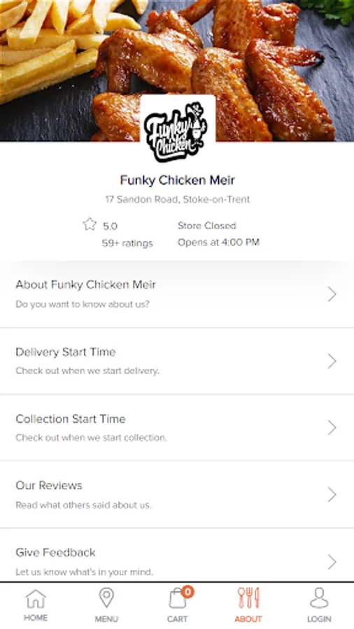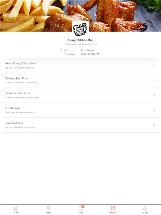 We're also available for ordering on https://funkychickenmeir.co.uk/storemenu and also on https://kuick.com/order/funky-chicken-meir
