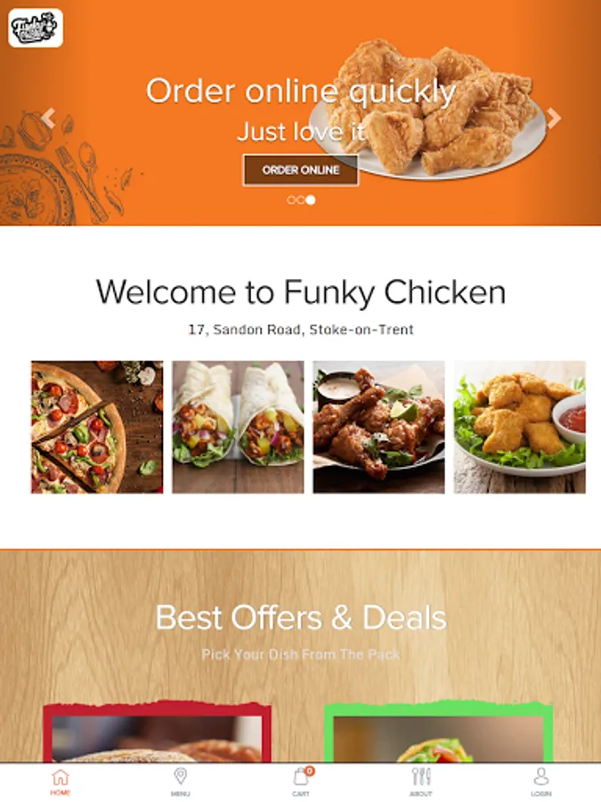 Funky Chicken is based in 17 Sandon Road, Stoke-on-Trent, Staffordshire, ST3 7DJ. We aim to bring all of our customers the best value for money, services and food around, plus we are constantly aiming to improve our service in Stoke-on-Trent. You can now order food online. Try our online website which contains all our menu. We offer deliveries to all surrounding areas of Stoke-on-Trent . We offer all our customers fast food delivery. You can now order your favorite dish online and get fast home delivery. We are very particular about our service and quality to give our customers a better experience; which is why we are now proud to offer this fantastic online ordering website. You can even pay online and get your food delivered to your home in Stoke-on-Trent.