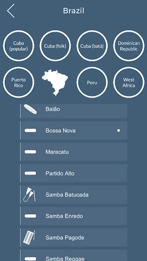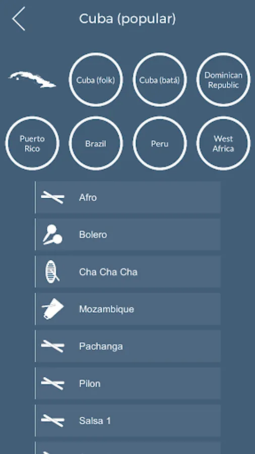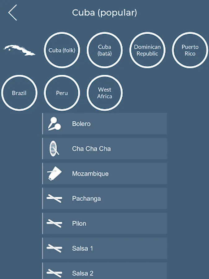 - Rhythms from Cuba, Brazil, Puerto Rico, Peru, West Africa, ...