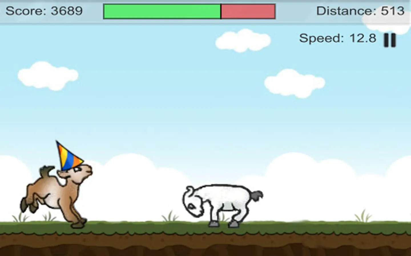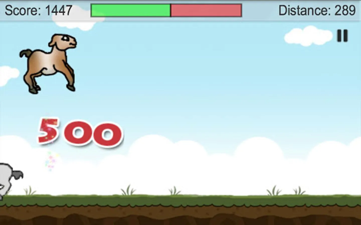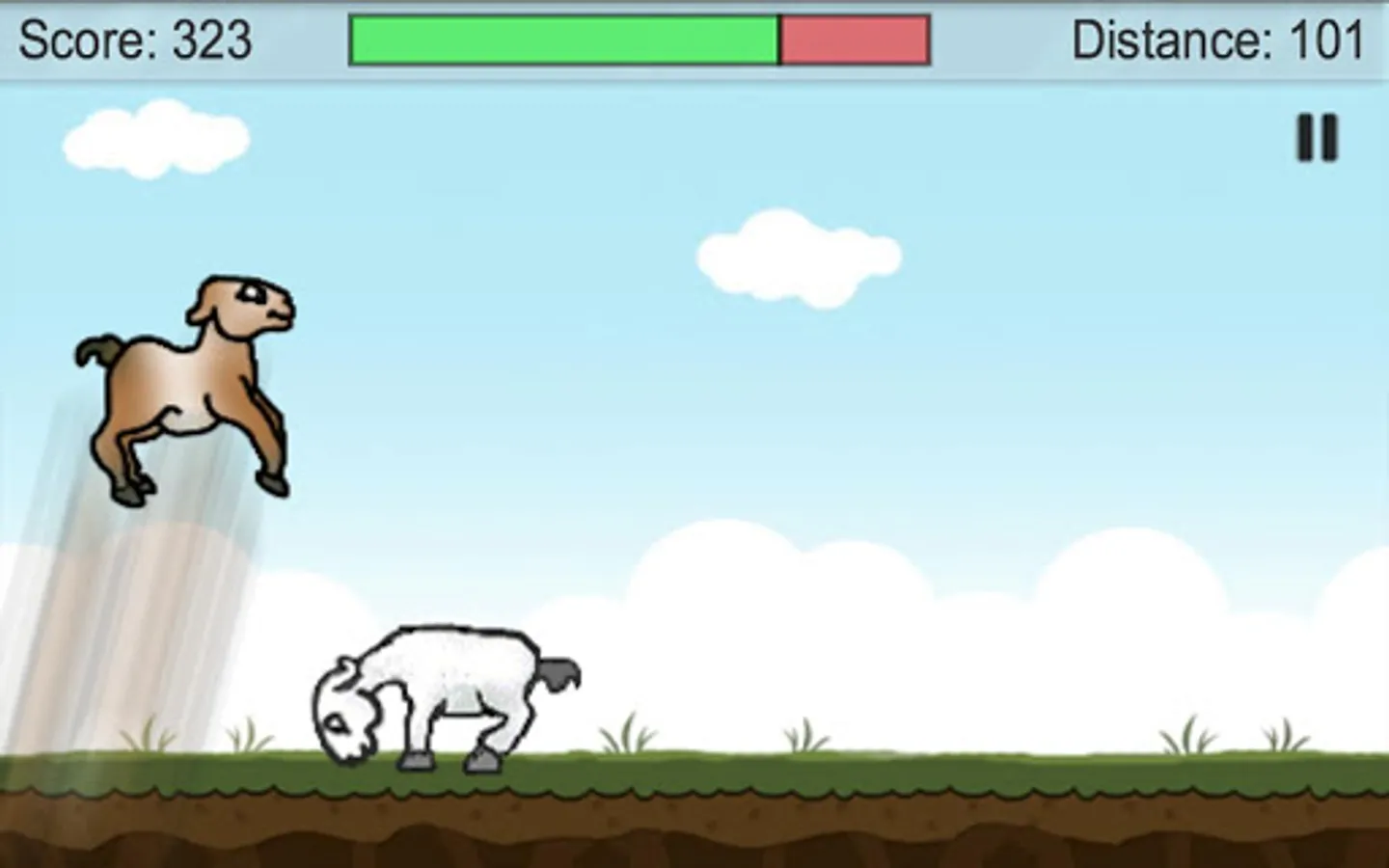 Help Buttermilk jump over her brothers and sisters. But don't run into them, otherwise Buttermilk will lose some of her strength. Wanna score some bonus points? Jump Buttermilk on top of another goat and propel her into the sky! Make sure you help her keep eating her oats, otherwise she'll get really tired and go to sleep. But don't worry! You can always wake her up and play again.