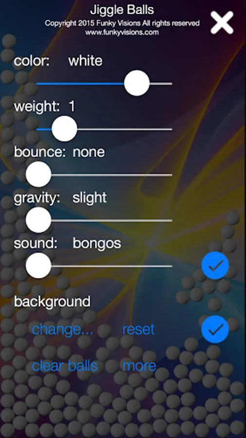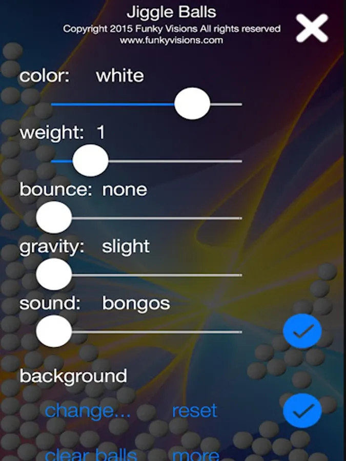 And now you can try different weights on the balls, choose your own background from your photo album, and set the bounciness!