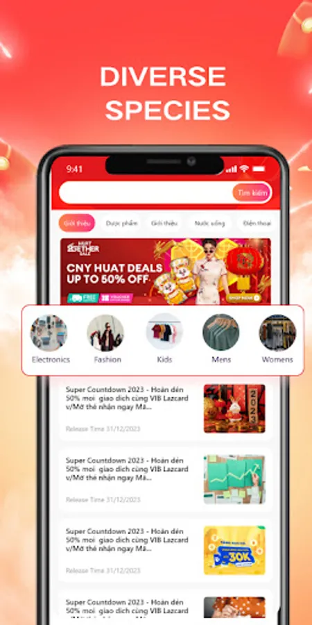 Mua sắm với sản phẩm đa dạng, giá cả cực ưu đãi: Người dùng có thể dễ dàng tìm kiếm và khám phá hàng ngàn sản phẩm từ các danh mục khác nhau như thời trang, điện tử, đồ gia dụng,... Việc tìm kiếm được tối ưu hóa để đảm bảo người dùng tìm thấy những sản phẩm phù hợp nhất với nhu cầu và sở thích của mình.