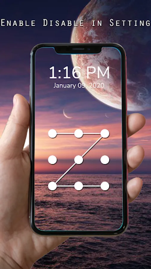 You can enable lock screen and disable the pattern screen lock from settings. You first have to set a unique pattern password for your phone. You have to drag your finger along at least four dots and set the photo pattern lock screen and use it every time you wish to unlock your phone. Keep your data safe and out of reach of other people using free screen lock pattern. No abuse of personnel data is possible with this Pattern Lock Screen.