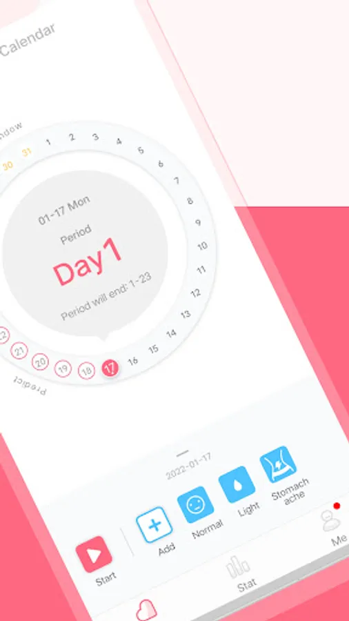 * The main panel integrates various reminders of the menstrual cycle, simple and clear