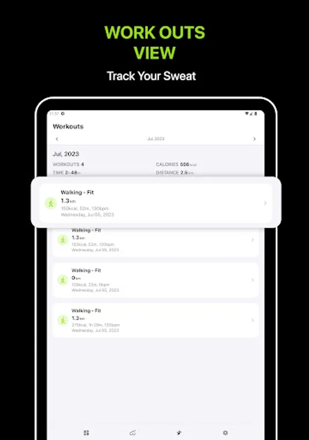 You can now log the details of your workout to analyze the patterns, spot areas for improvement, and set optimistic goals.