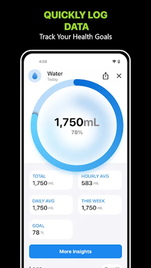 Specify your daily Health goals and keep tabs. Log calories, water, or workouts right from the app.