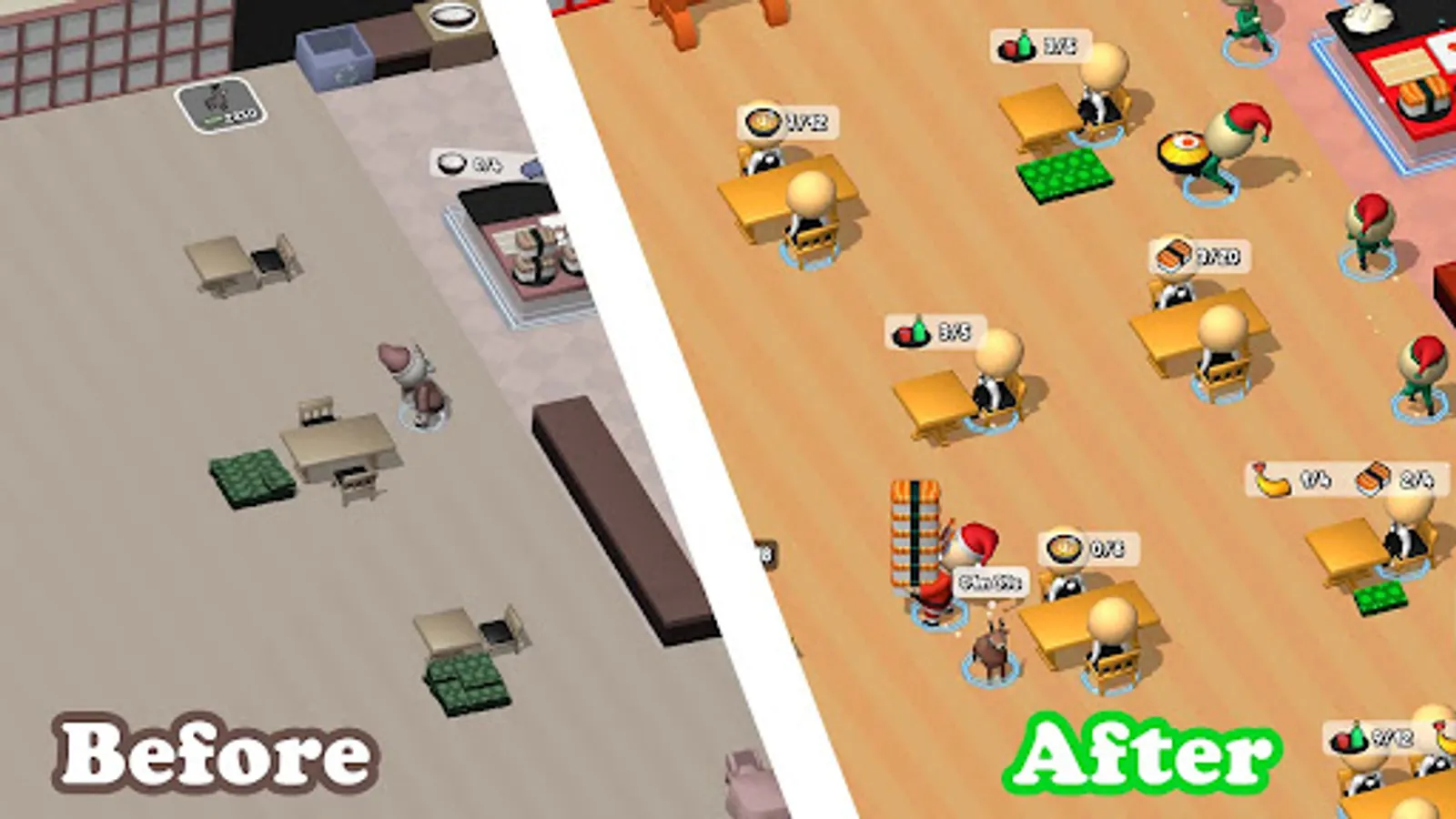 Hide Chef, Waiter and Porter to Cook and Serve the customers fast and time wisely, deco restaurant to get more TIPS!