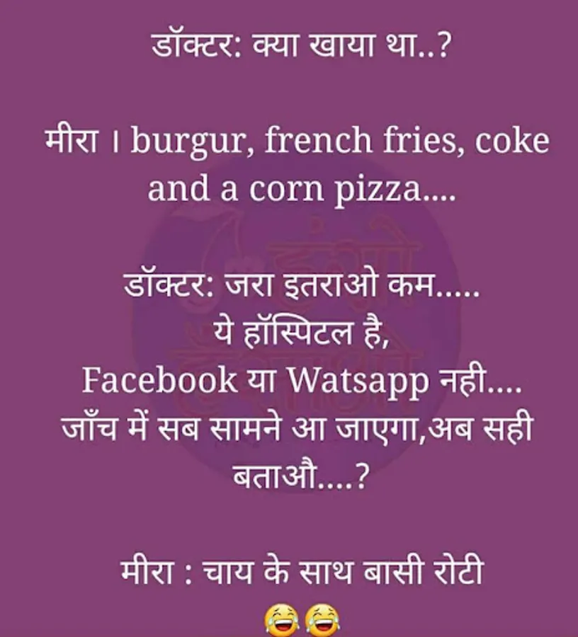 ➵ You can share any hindi jokes or meme on Facebook, Twitter, Whats app, Google+, Hangout, Pinterest, Quora and many more social platforms.