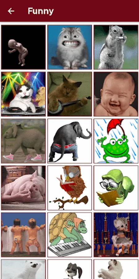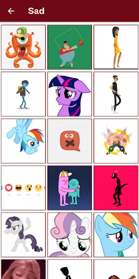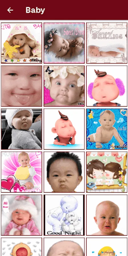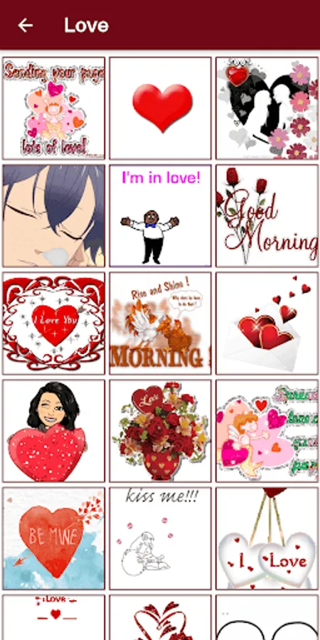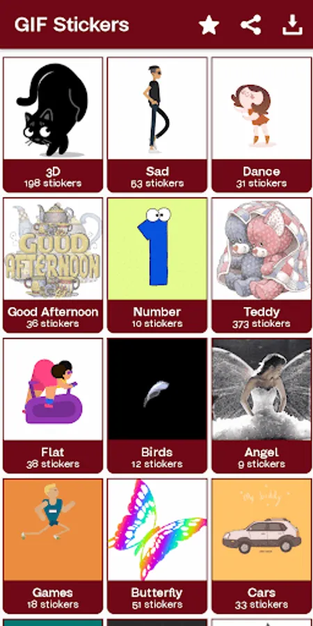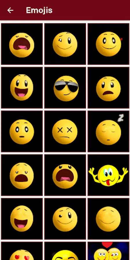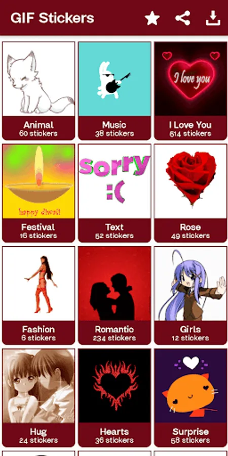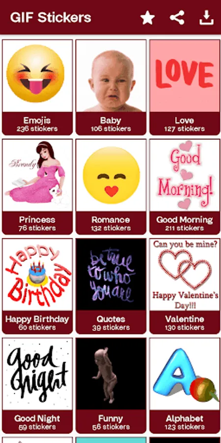 All categories has their own different types of stickers and emoji.