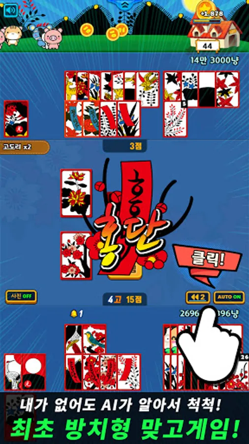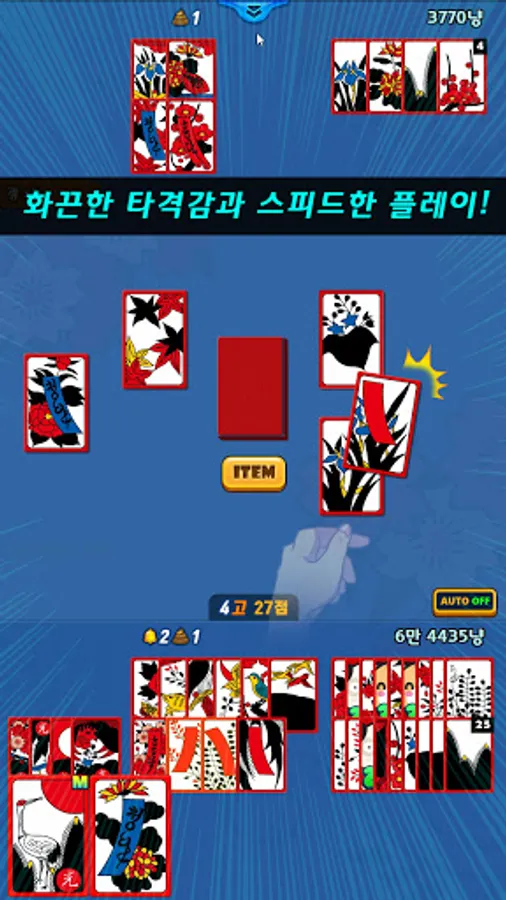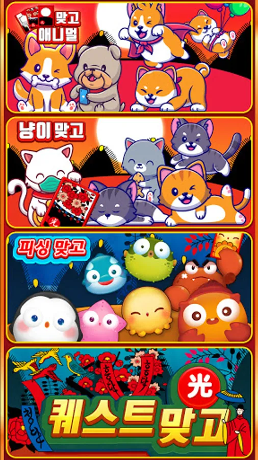 -Earn coins for every time Cheongdan, Hongdan, Chodan, Godori, 3light, 4light, 5light, write, Duck eat, indigo, bomb, go, stop, mission success, light beat, blood beat, hard beat, brutal beat!