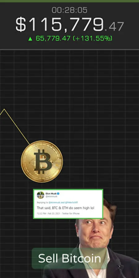 Bitcoin Crash is a game designed to draw attention to how easy it is to become a victim of manipulation. Like Donald Trump, Elon Musk can in one word arouse investor interest in a particular company, influence stocks and the stock market. For Tesla, almost all the posts worsened its financial situation. Musk admitted in an interview that he did not expect negative reactions for his own companies.