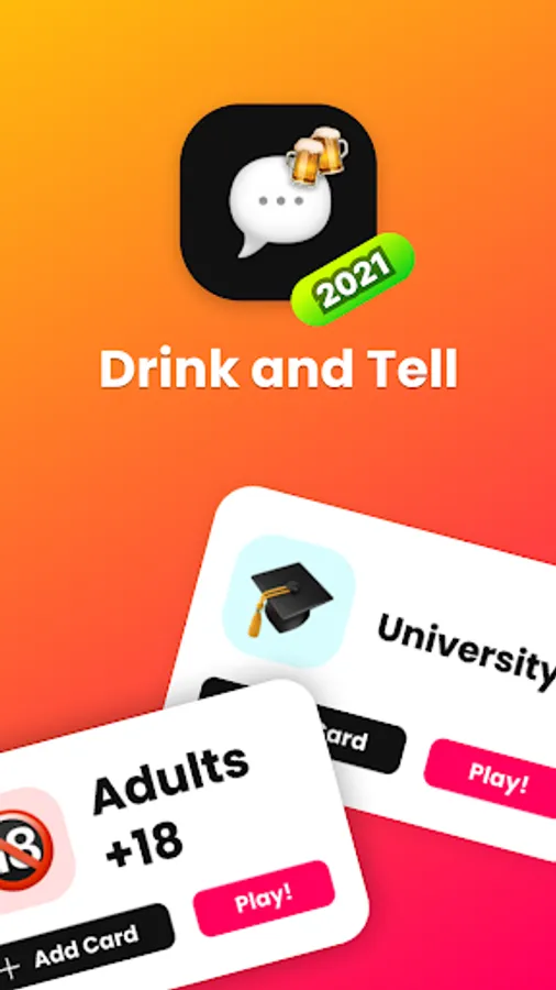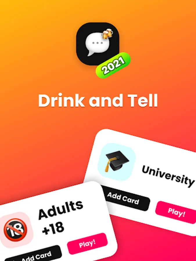 Drink and Tell is a famous drinking game to play at your houseparty with friends, couples, boyfriend and girlfriend. We donโt have repetitive questions and you can add your own questions!