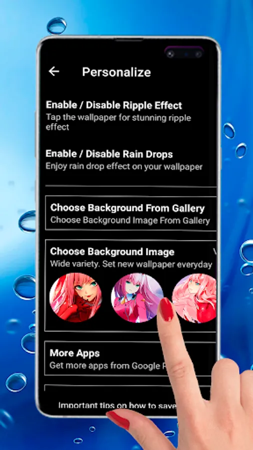 Today we offer you a cute set of 4K live wallpapers with water ripple effect! There are imaged pretty girl Zero two!