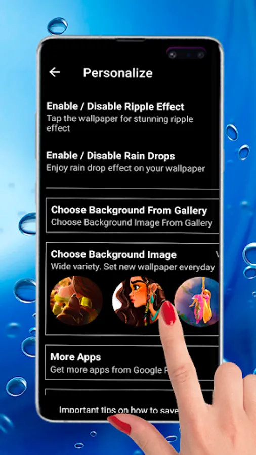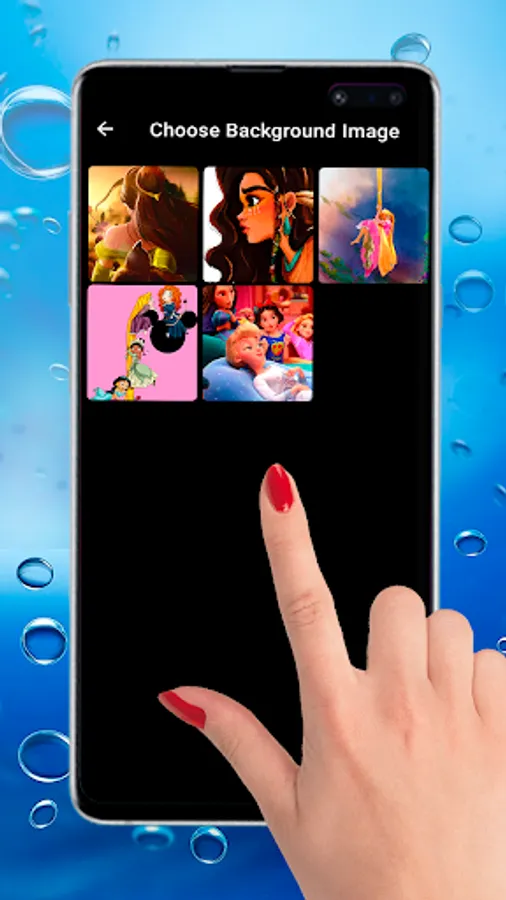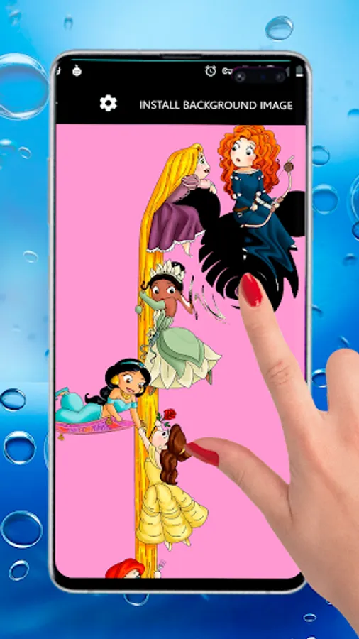 Cute cartoon princesses will make you feel royal and cute! They live in fancy castles and have lots of pretty dresses and glittering beauty salon make up. Every little girl dreams to be a princess! You can be a princess with our cute live wallpapers with water ripple effect!