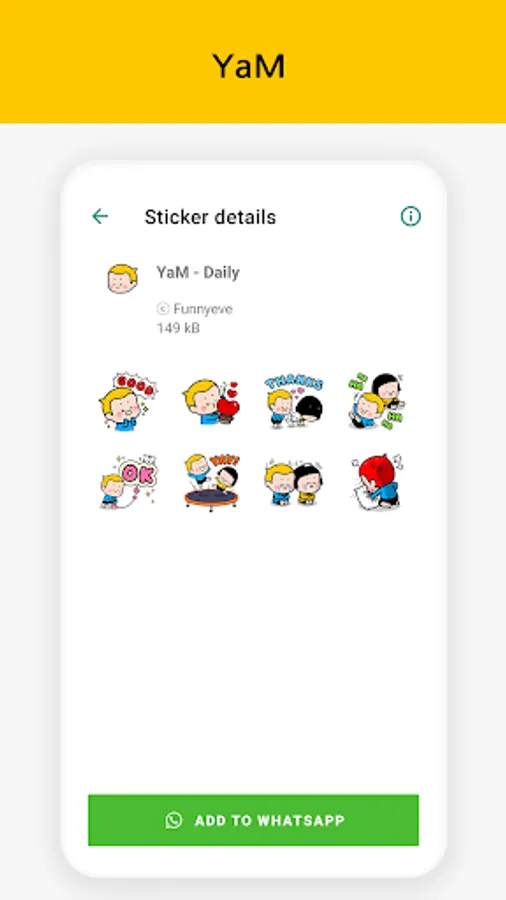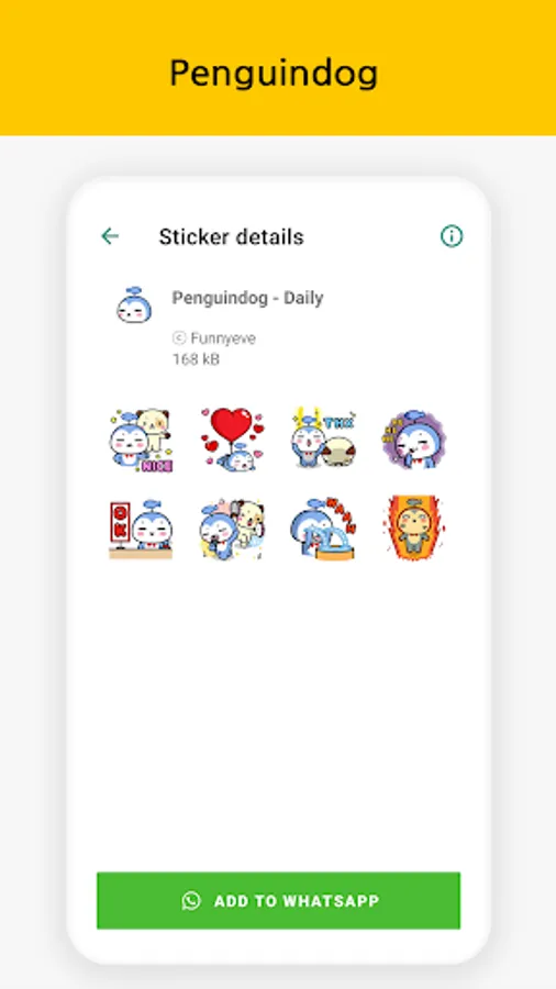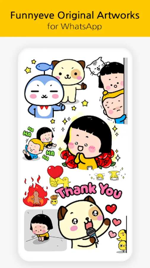 You can finally download this new WAStickerApps from Funnyeve. Funnyeve is one of the most popular character creators in South Korea and has nearly 1.5 million followers on social media.