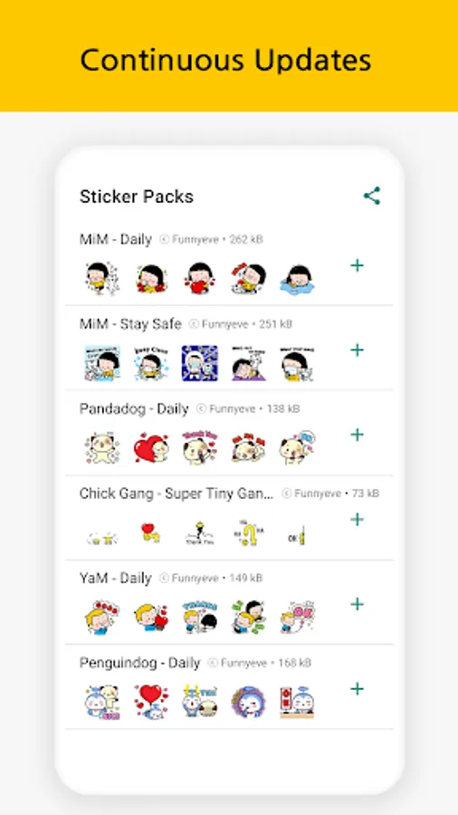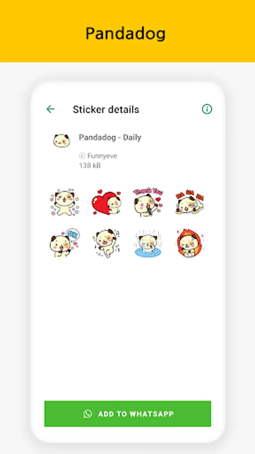 If you download this WAStickerApps, you can add Funnyeve's representative characters, 'Mobile Girl, MiM' and 'Pandadog', to the WhatsApp sticker service for free.
