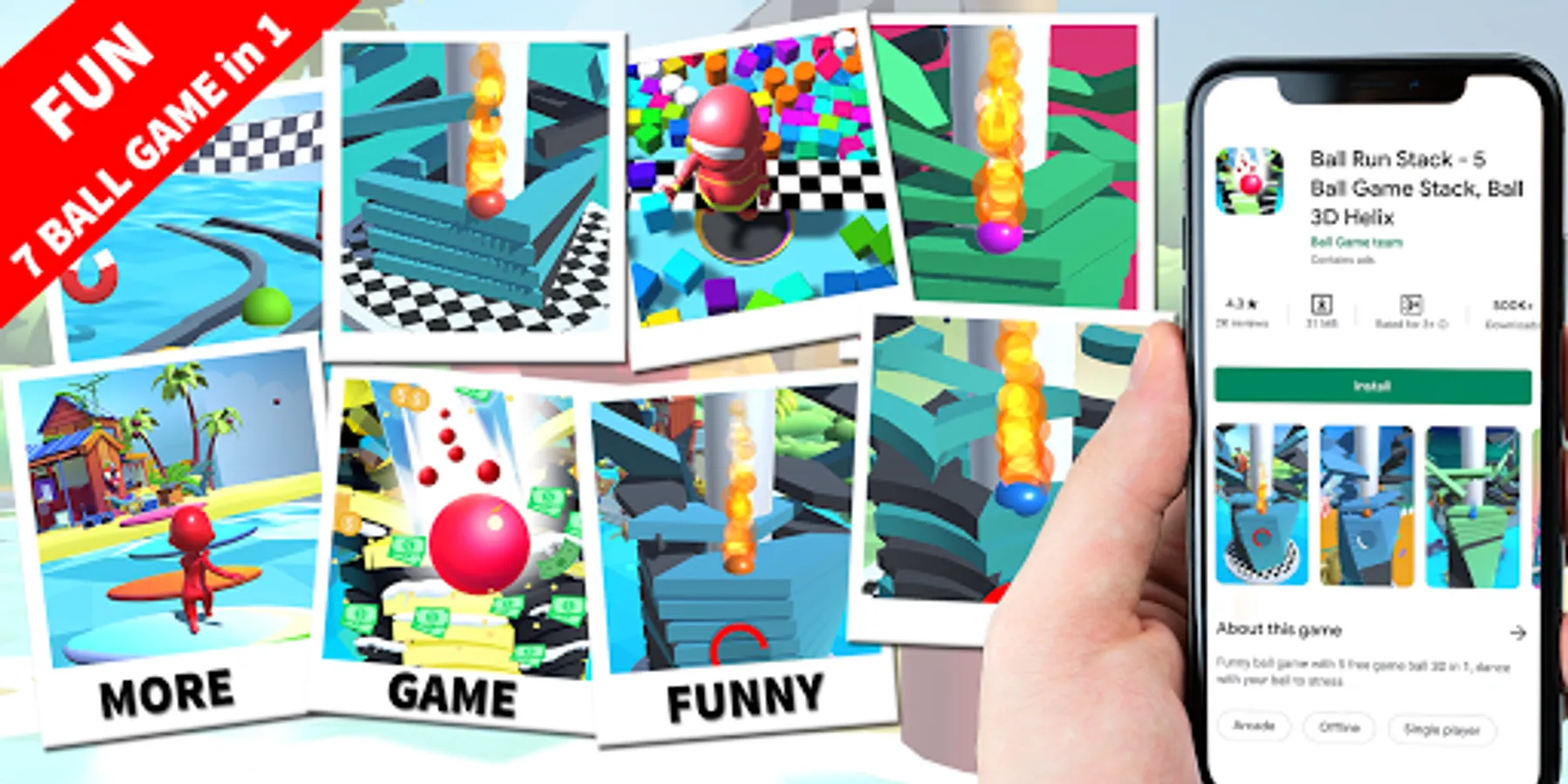 ● Ball Run Up: Very simple play game, move your finger to control your ball run up, let use ball same color to hit another ball.