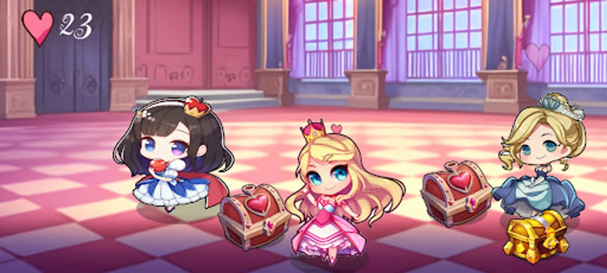 The game features many popular princesses, all presented in a charming anime chibi style.