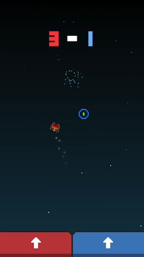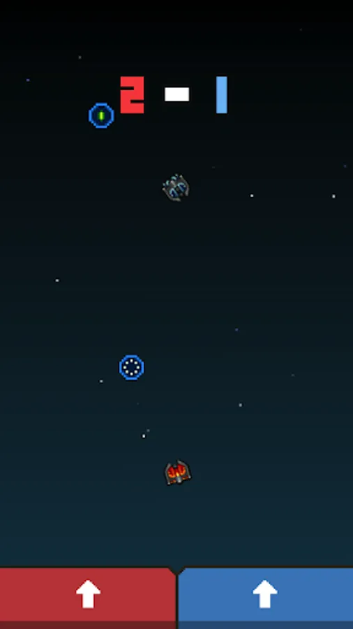 - Hit the power-ups to shoot. Make your opponent's spaceship explode to score 1 point.