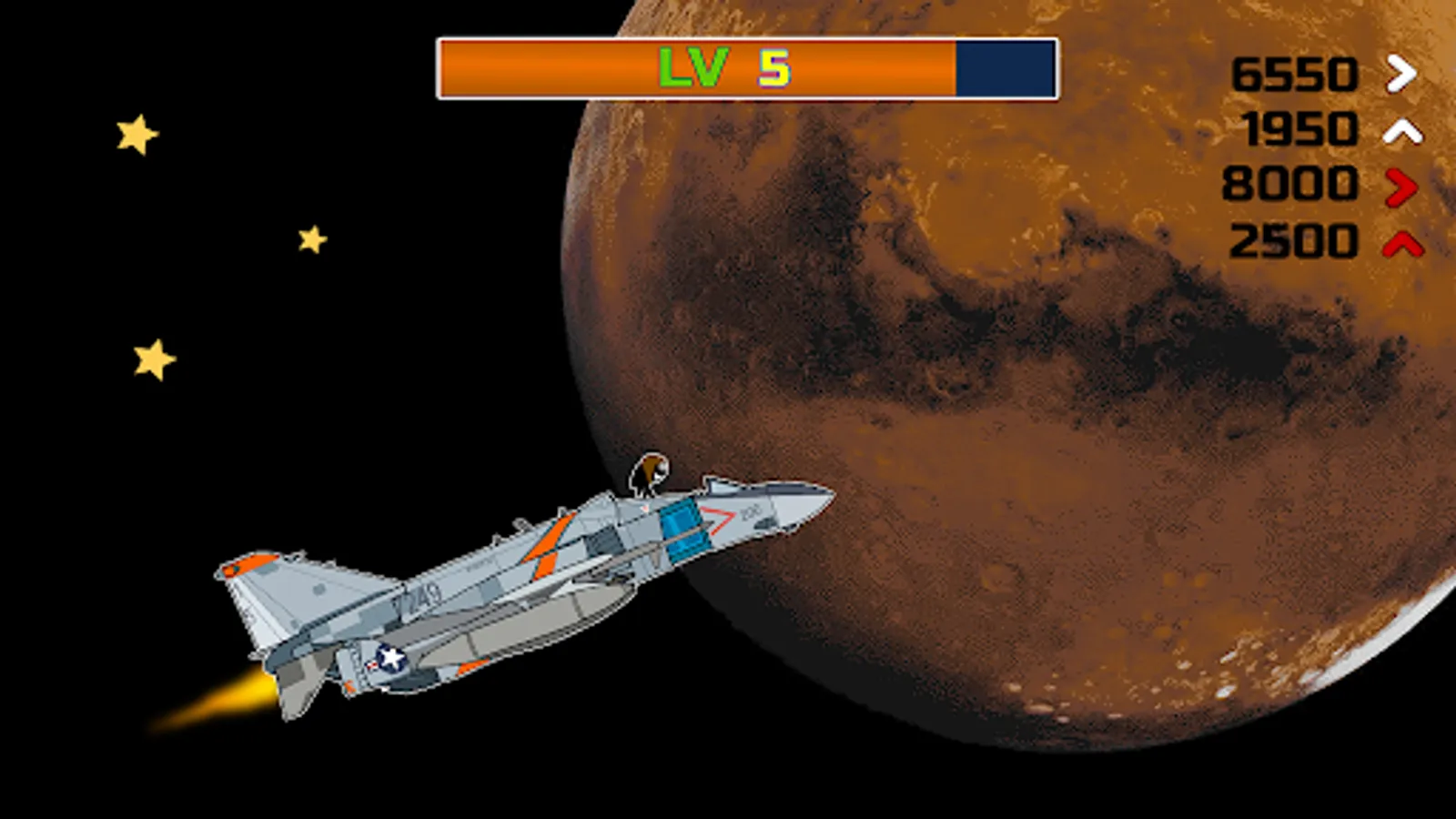 Build your plane from tow wheels. Upgrade ability and unlock new skills. Learn to fly from a newbie, fly to the moon and visit Mars finally.