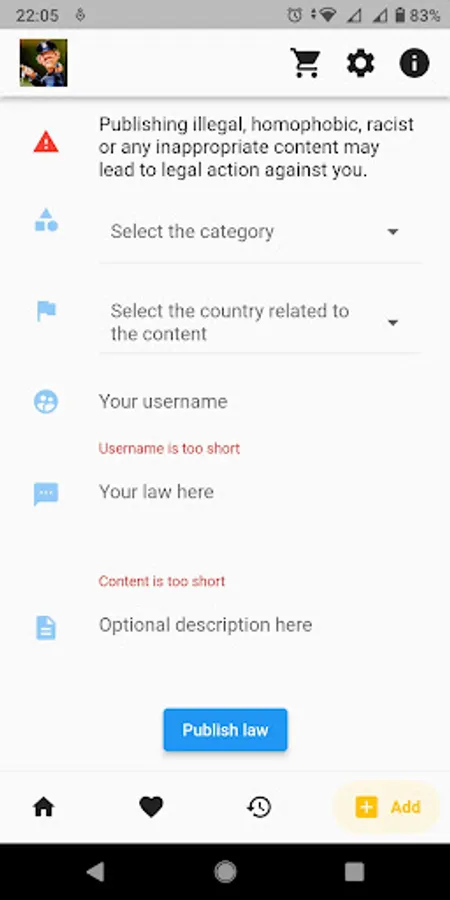 You can share laws with other people by adding them to the application!