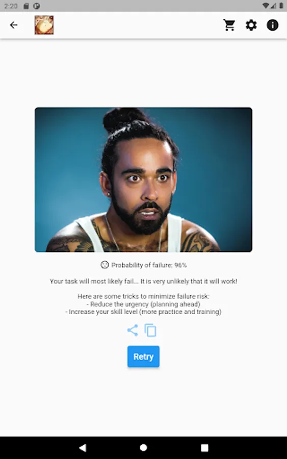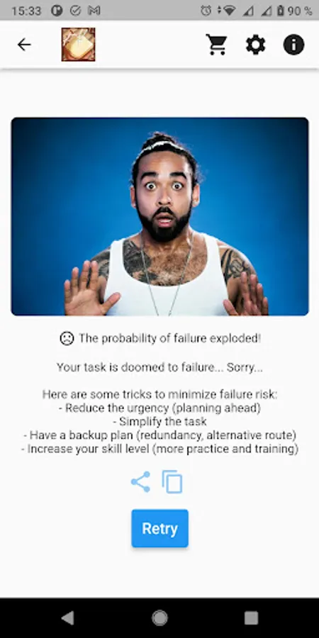 This calculator based on Murphy's law will help you calculate your bad luck rate for the realization of your project by providing information about yourself and about the task.