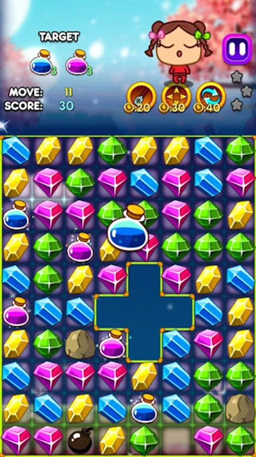 Gently move your finger in the screen, connect the same jewels, the jewel will become live, expend your relax time, enjoying colorful world!