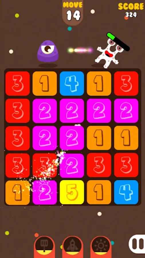 Simple rule, click the same number, more than two, they will grow up, until there is no more same number in the chessboard.